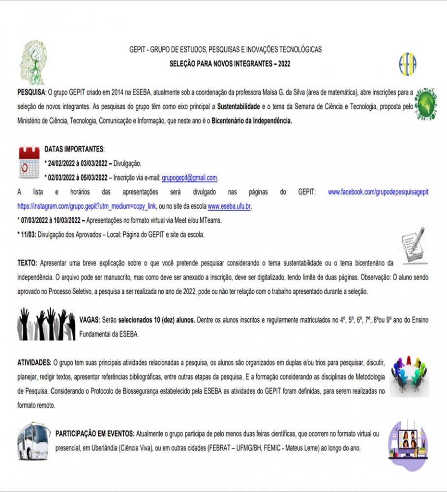 Edital de Convocação de Novos Intergrantes GEPIT- 2022