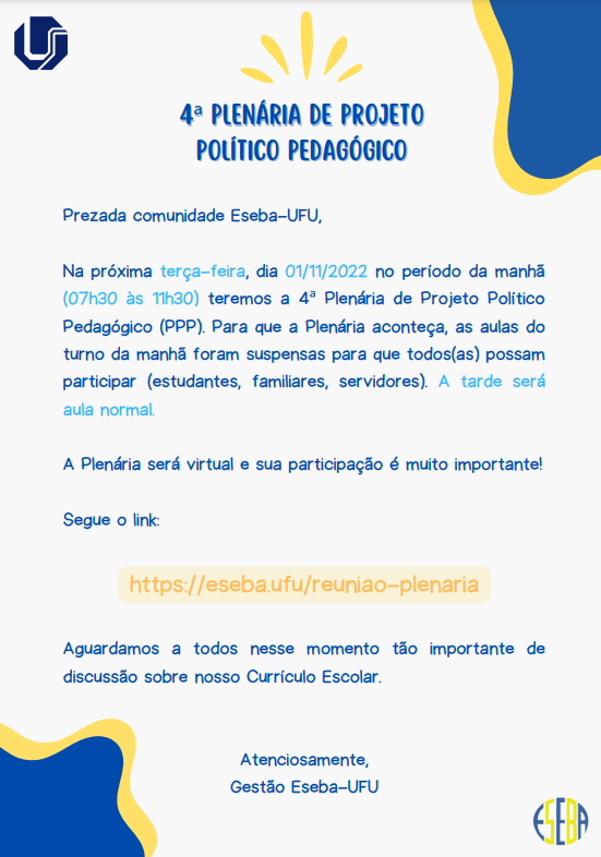 Link para plenária: eseba.ufu/reiniao-plenaria