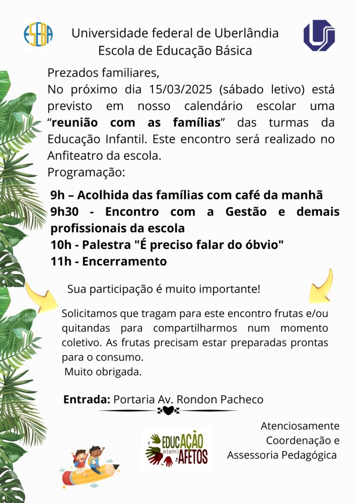 Atenção famílias da Educação Infantil