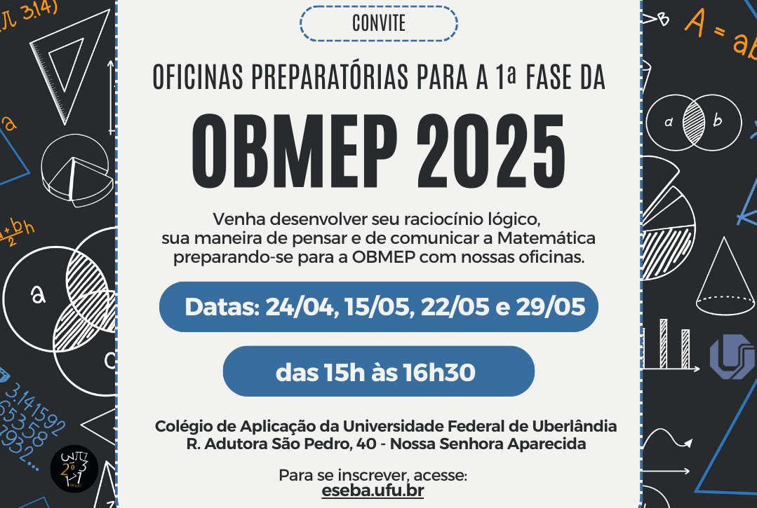 A área de Matemática, por meio do seu projeto de extensão, realizará oficinas preparatórias de Matemática para estudantes que desejarem se preparar para a 1ª fase da 20º Olimpíada Brasileira de Matemática (OBMEP) de 2025.