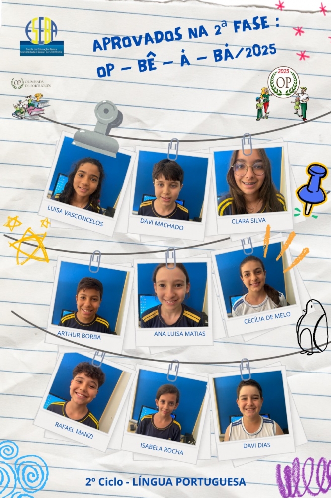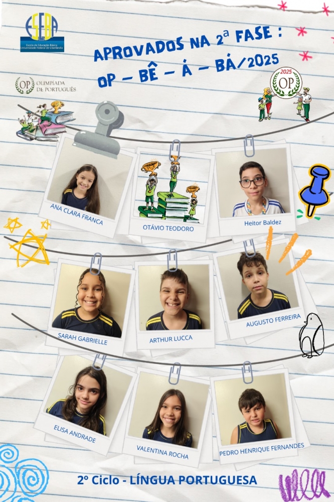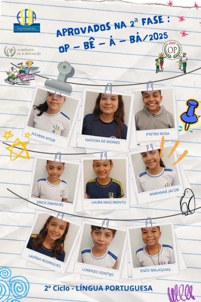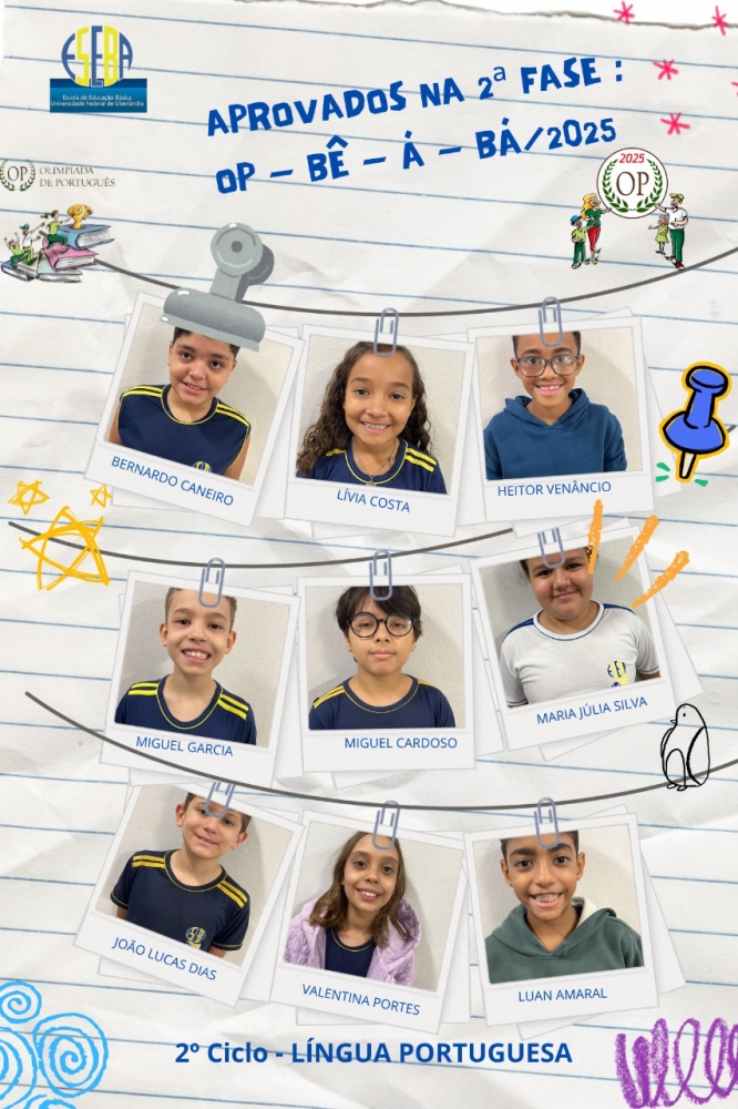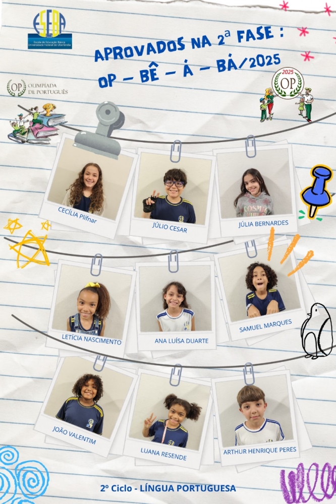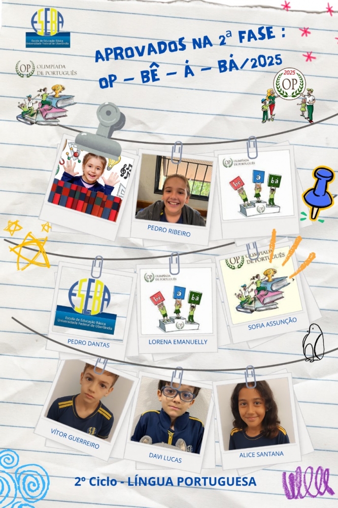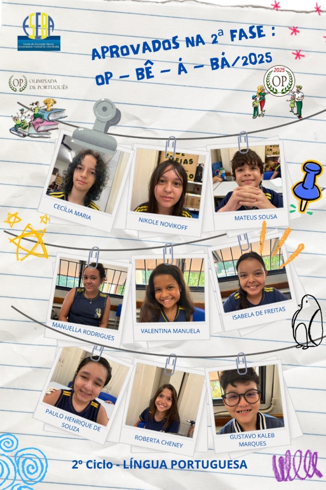Estudantes aprovados para 2ª FASE nas OLIMPÍADAS DE PORTUGUÊS OP – BÊ – Á – BÁ/2025