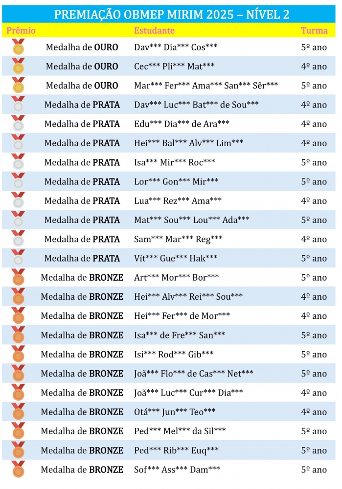 Premiação de Estudantes na 4ª OBMEP Mirim 2025