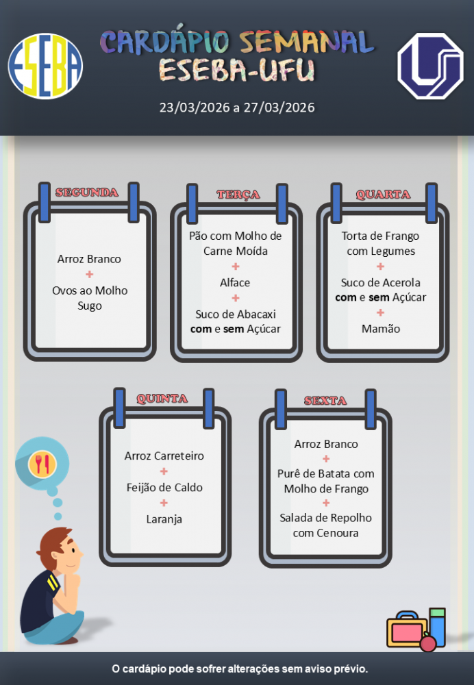 Observação Importante: O cardápio pode sofrer alterações sem aviso prévio.