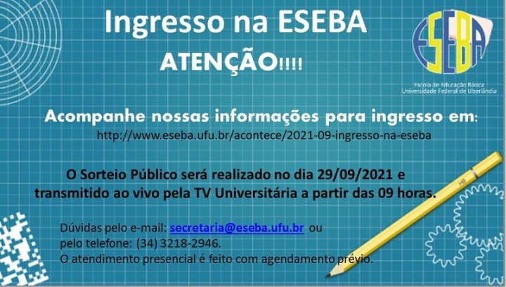 Dúvidas pelo e-mail: secretaria@eseba.ufu.br ou pelo telefone (34) 3218-2946.