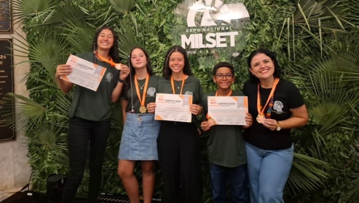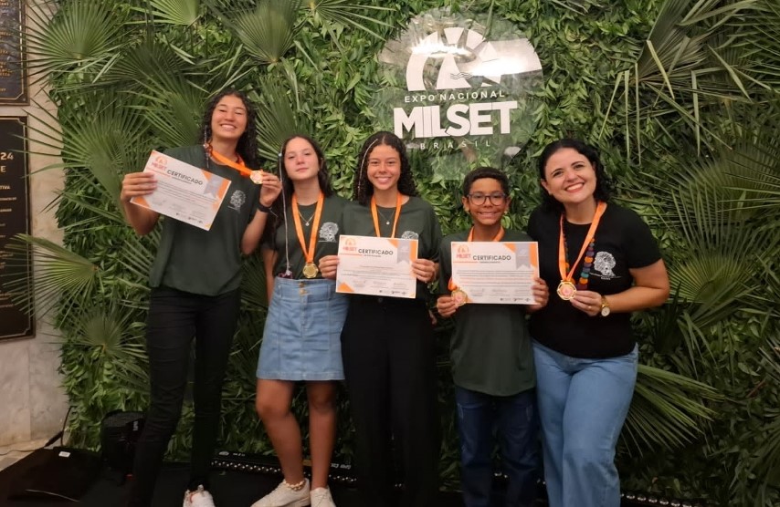 Visando despertar o interesse dos alunos por ciência e tecnologia, o Grupo de Estudos, Pesquisas e Inovações Tecnológicas desenvolve suas atividades na Escola de Educação Básica (ESEBA) da Universidade Federal de Uberlândia (UFU). Durante a formação dos jovens pesquisadores, o grupo incentiva a popularização da ciência, permitindo a divulgação dos trabalhos desenvolvidos, em eventos científicos. Pensando nisso, quatro estudantes pesquisadores, juntamente à coordenadora do grupo, tiveram a oportunidade de participar da Expo Nacional Milset Brasil 2025, uma feira científica a nível internacional e uma das maiores da América Latina. Destaca-se que o objetivo desta feira é promover a integração entre educação, pesquisa e empreendedorismo, fomentando o intercâmbio científico e cultural entre estudantes expositores.