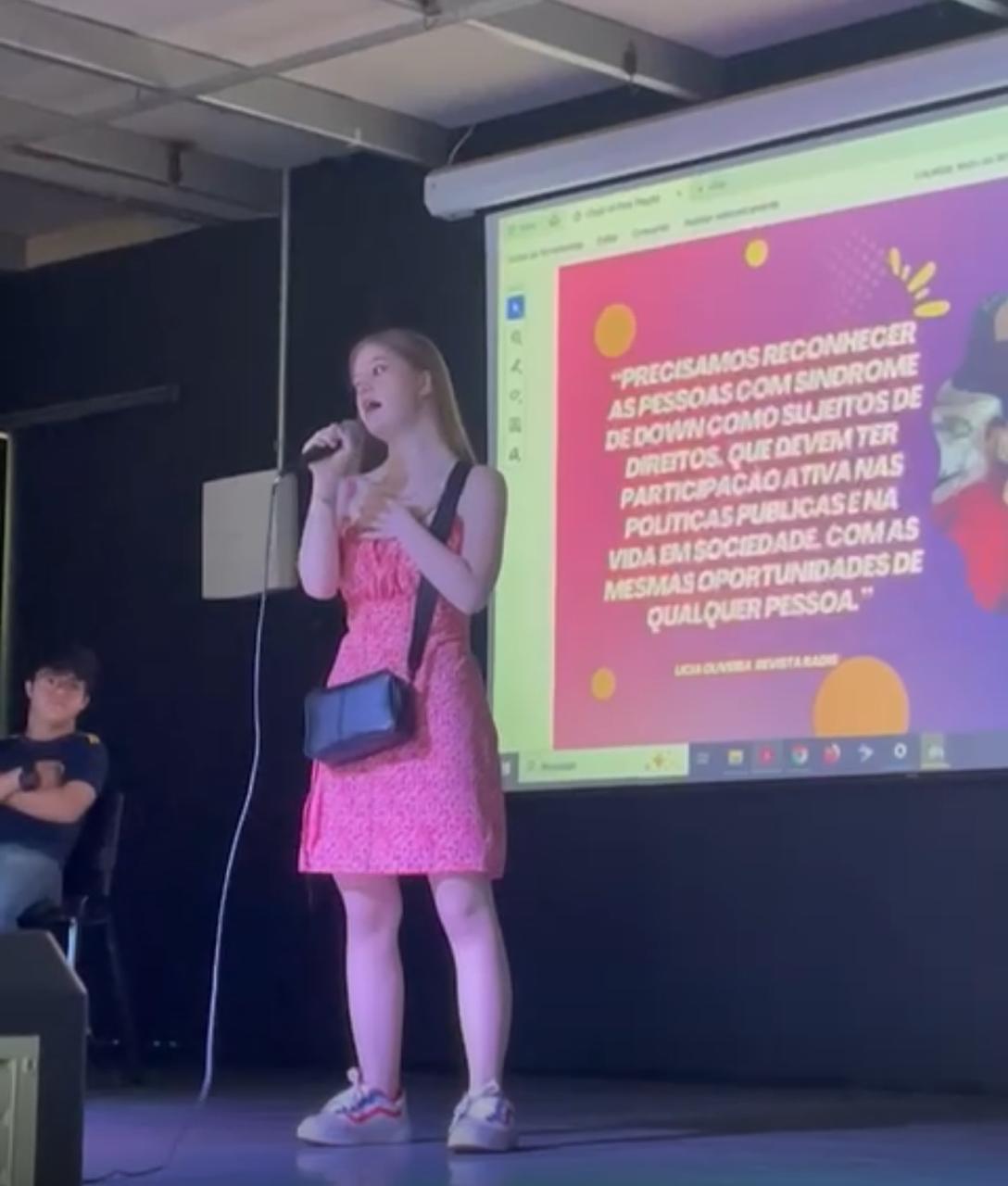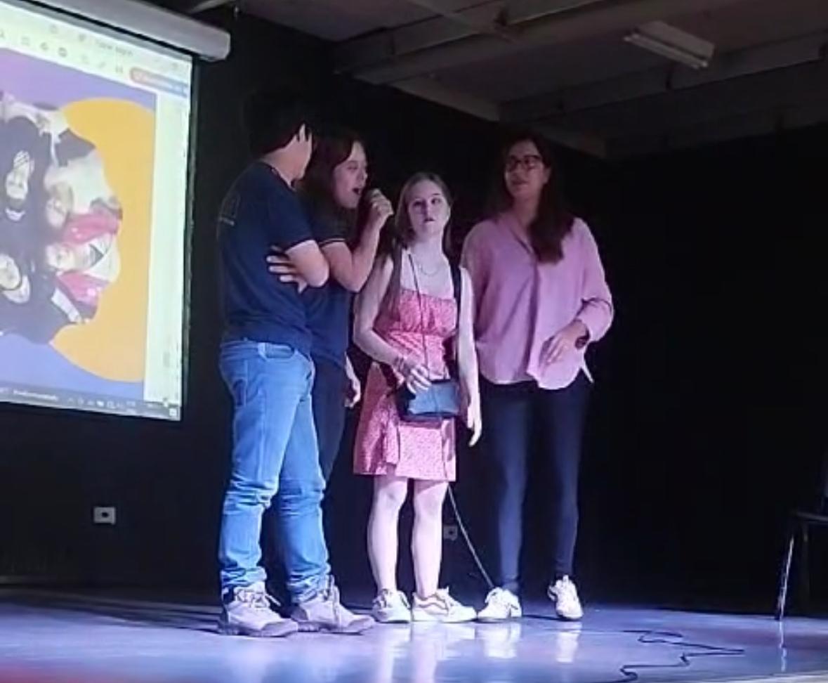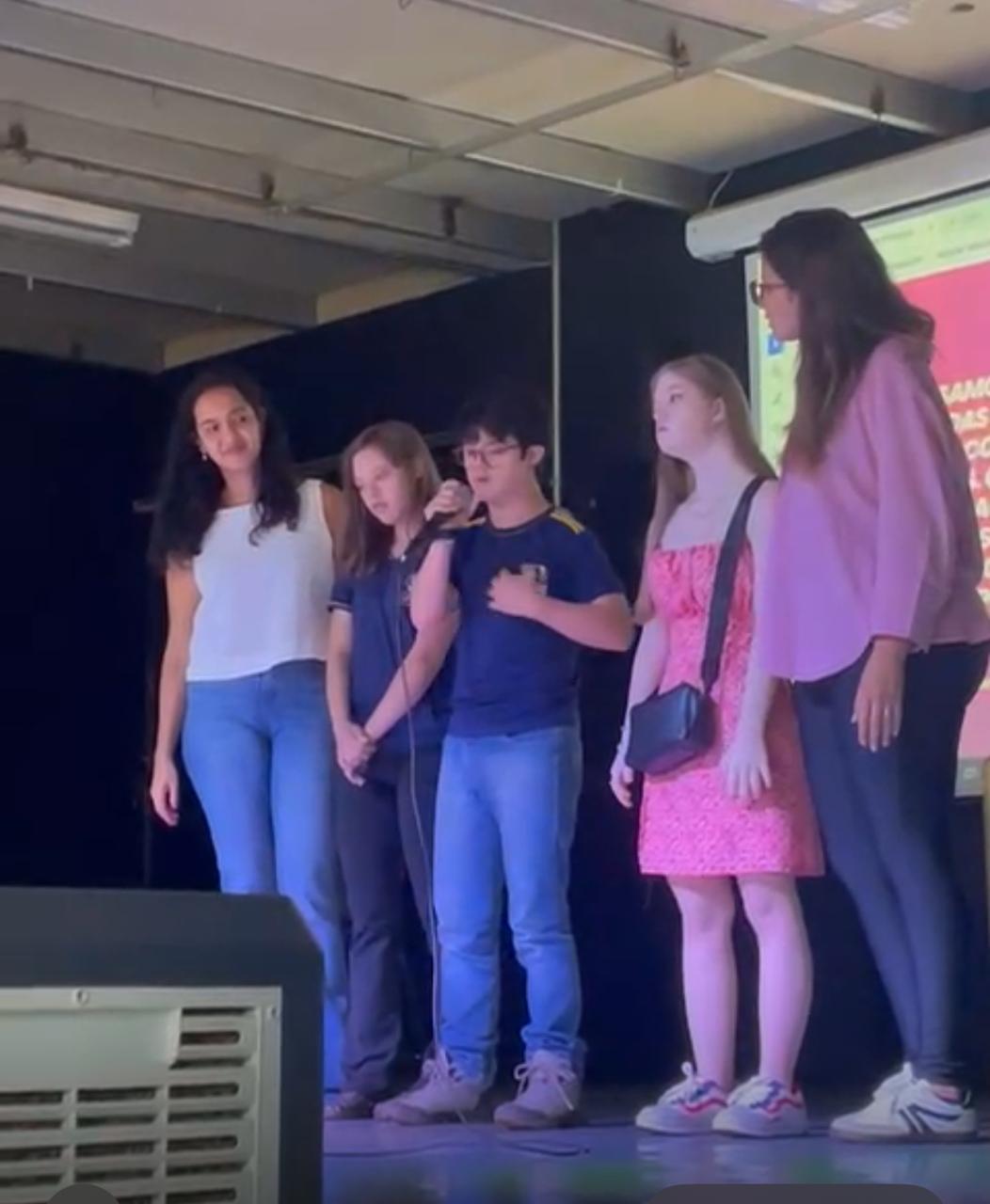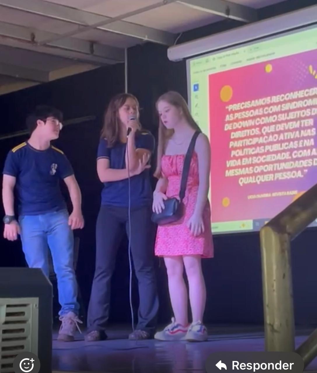 Em nosso primeiro encontro, realizado no dia 20 de março, abordamos o Dia Internacional da Síndrome de Down. Contamos com a participação dos estudantes Emanuel Alves Langkammer (8º ano), Isabela Gontijo Pereira (9º ano) e da nossa aluna egressa Vitória Monteiro Brandão. Eles compartilharam suas trajetórias, responderam às perguntas dos colegas e nos proporcionaram momentos de escuta, acolhimento e aprendizado.