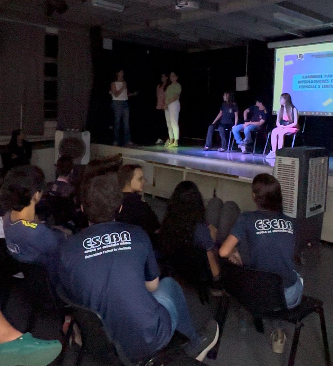 Neste ano, nós, professores do Colégio de Aplicação da Universidade Federal de Uberlândia, iniciamos o projeto “Caminhos para a Inclusão: interlocuções entre Educação Especial e Língua Portuguesa”, coordenado por Bruno Figueira, Franciele Queiroz, Rochele Garibaldi e Walleska Bernardino. A proposta está alinhada aos princípios da educação inclusiva e tem como objetivo ampliar a formação dos estudantes dos 8º e 9º anos, promovendo reflexões sobre os contextos e as vivências do público da Educação Especial.
